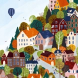 Oplev naturens og byens magi i ét billede. Puslespillet Skovby byder på en harmonisk kombination af farver og detaljer, der glæder både begyndere og erfarne samlere. Takket være den høje kvalitet og præcist udskårne brikker er samlingen flydende og underholdende.
