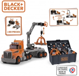 Denne robuste lastbil i BLACK+DECKERs ikoniske farver gemmer i anhængeren en praktisk opbevaringskasse med håndtag, som holder alt værktøj pænt organiseret. Børn vil elske den realistiske børne-boremaskine og det rige sæt af bits og dele til byggeri.