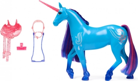 Oplev magien fra serien Unicorn Academy med enhjørningen River i størrelsen 24 cm. Denne smukke legeting, inspireret af heltinderne fra NETFLIX, fortryller med et glitrende horn, perlemorsskimrende tegn på vandmagi og fyldig man og hale til at børste. Inkluderer aftagelig trense og sadel for endnu flere legemuligheder. Med en blid bevægelse af hovedet vækkes hendes personlighed til live, så børn let kan genopleve det magiske bånd mellem rytteren Isabel og hendes enhjørning.