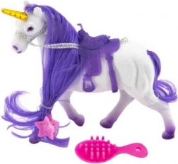Sød plastikenhjørning med blød overflade bringer børns fantasi til live. Den har en fyldig man og hale til at rede, og inkluderer sadel og tilbehør for endnu sjovere leg. Ideel som gave til hesteelskere fra 3 år.