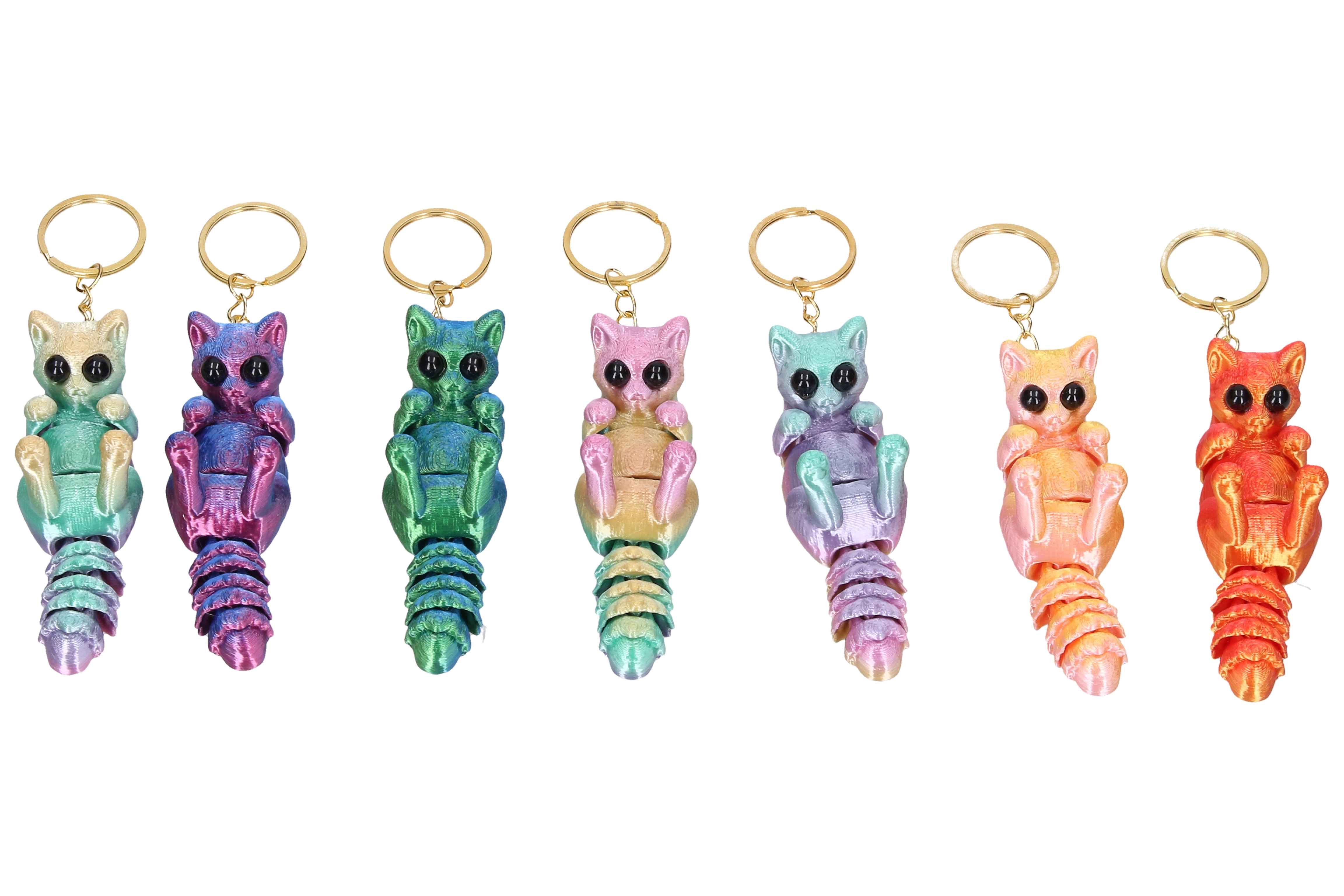 Den søde 3D-nøglering med kat er det ideelle tilbehør til hverdagsbrug. Takket være den solide ring og det holdbare materiale holder den sikkert styr på dine nøgler og pynter samtidig din rygsæk eller taske. Du kan vælge mellem 7 varianter, så du nemt finder en stil, der passer til dig.