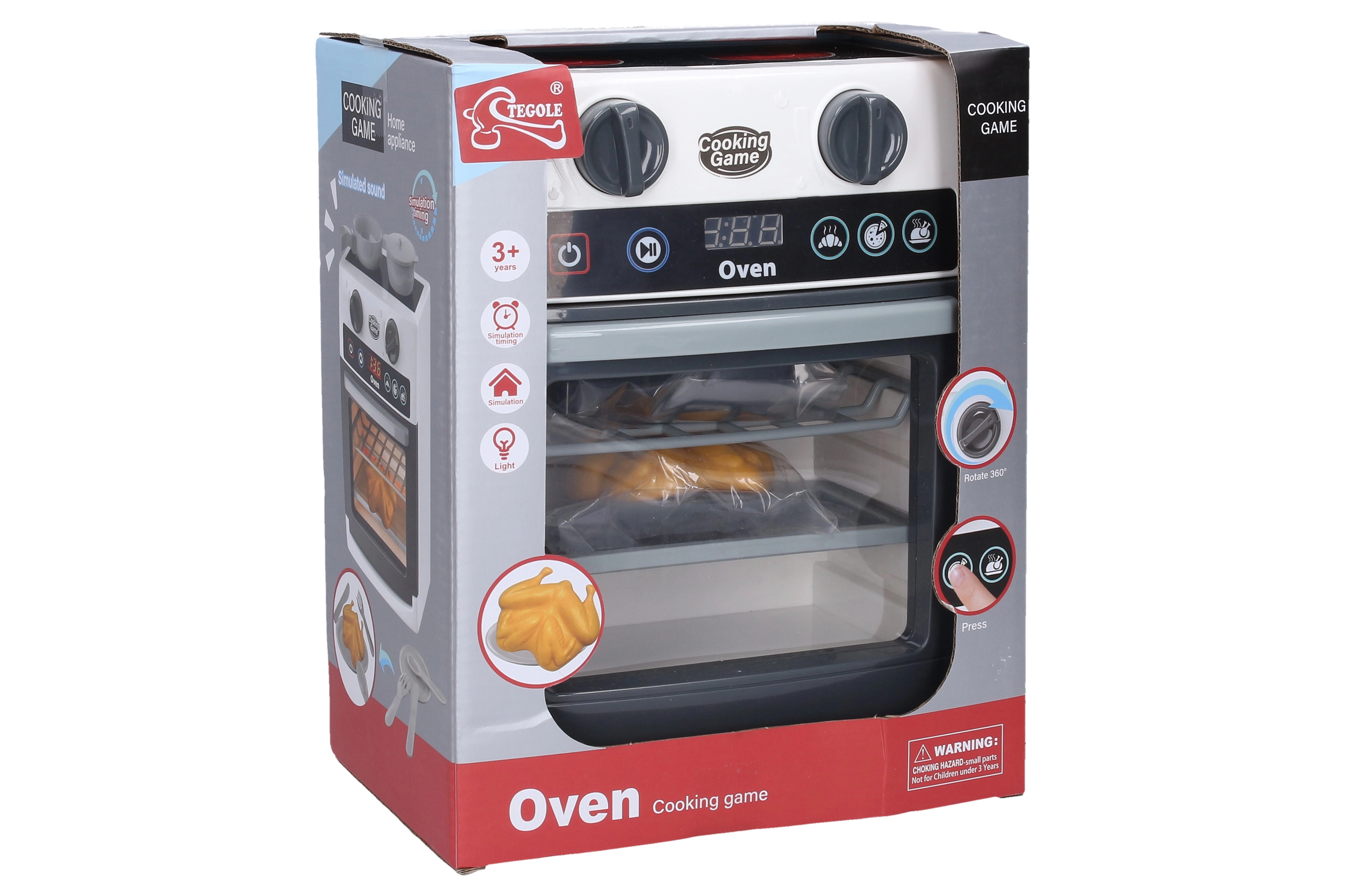 Denne legeovn med effekter giver realistisk leg takket være lys- og lydfunktioner. Når on/off-knappen trykkes ned, tændes ovnen, og efter valg af program starter en nedtælling, som simulerer rigtig bagning. Børn kan dermed træne fantasi og rolleleg i et sikkert miljø.