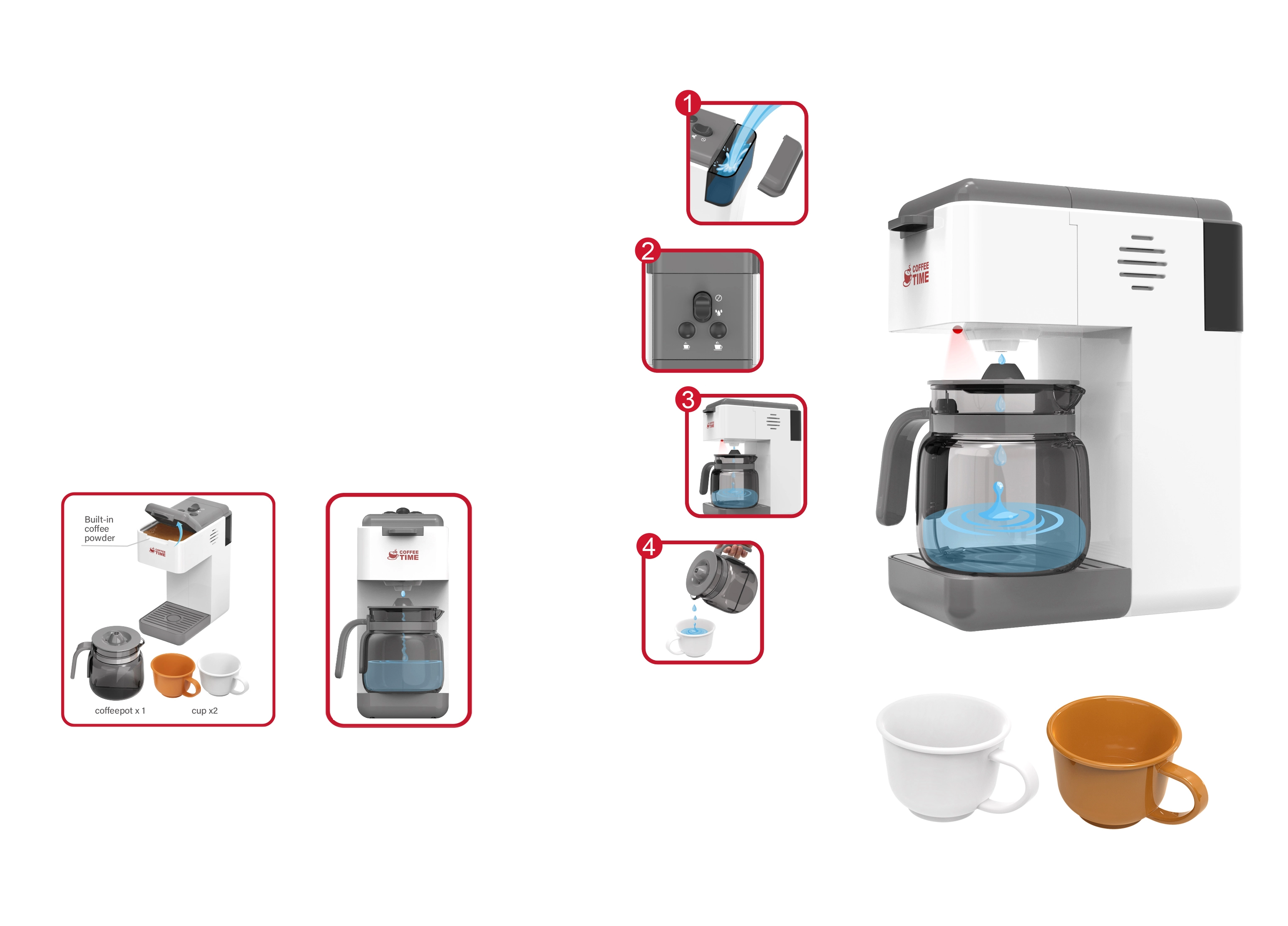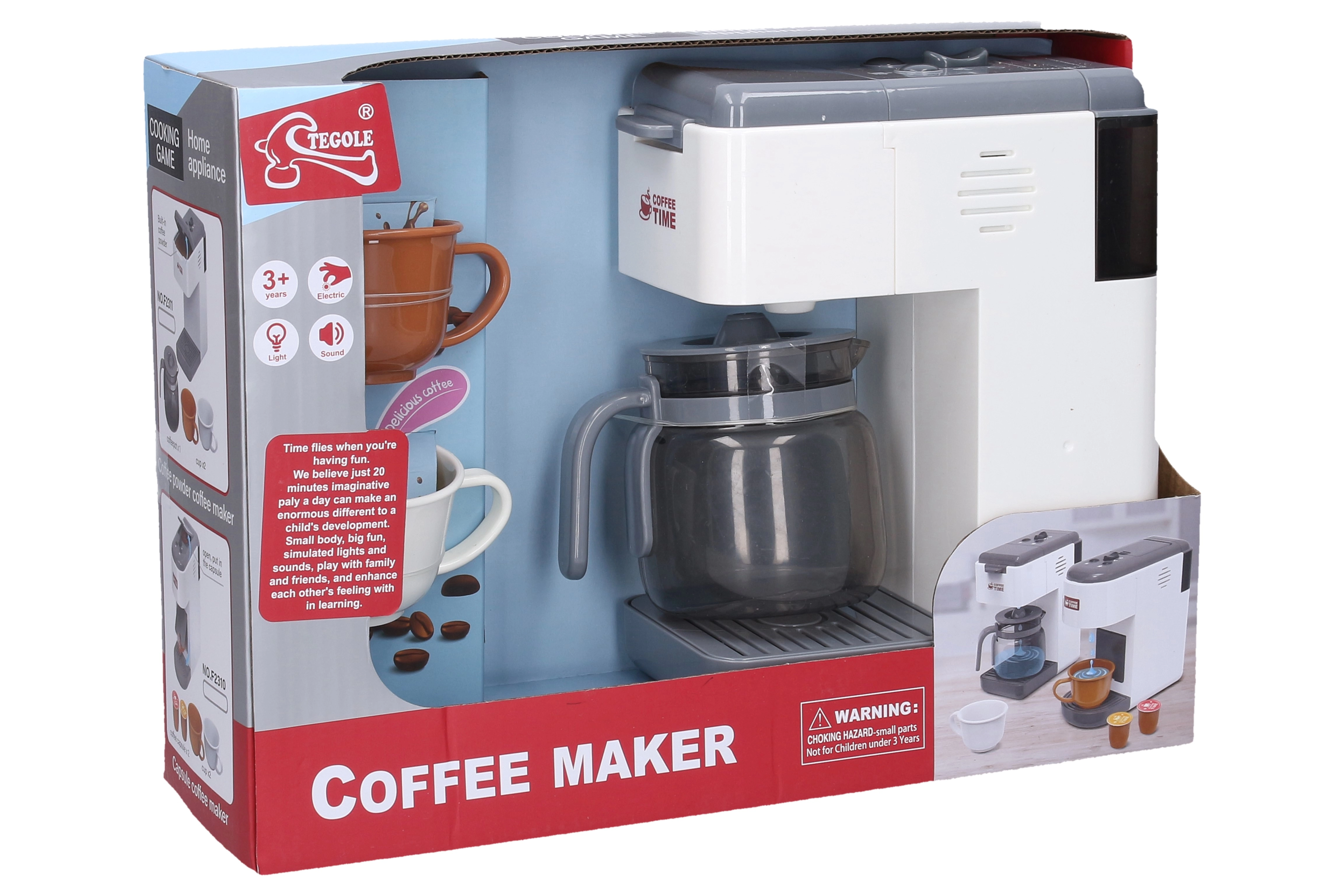 Oplev en sjov børne-kaffemaskine med kande, der simulerer ægte kaffebrygning. Fyld blot vandtanken, så fylder kaffemaskinen automatisk vand i kanden. Takket være lys- og lydeffekter bliver legen endnu mere realistisk, mens on/off-knappen sikrer nem betjening, også for mindre børn.