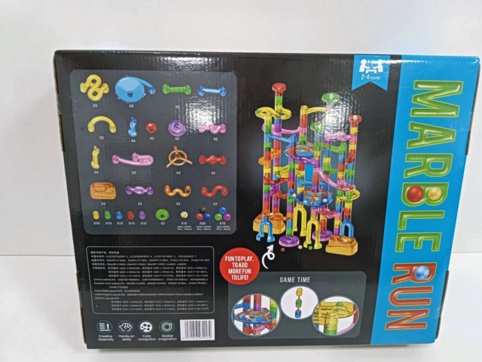 Delene er lavet i livlige farver og danner efter samling en stabil konstruktion. Sjov og læring går hånd i hånd – den fremmer hånd–øje-koordination, opmærksomhed og kreativ tænkning. Takket være det rige tilbehør, inklusive glaskugler, plastkugler og fluorescerende kugler, kan du nemt tilpasse både sværhedsgrad og banens udseende.