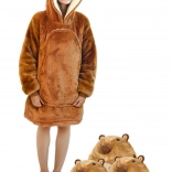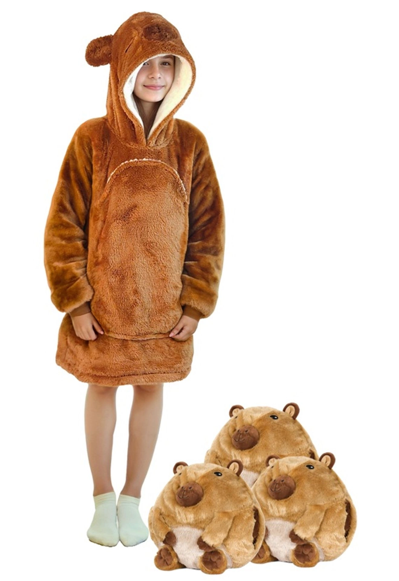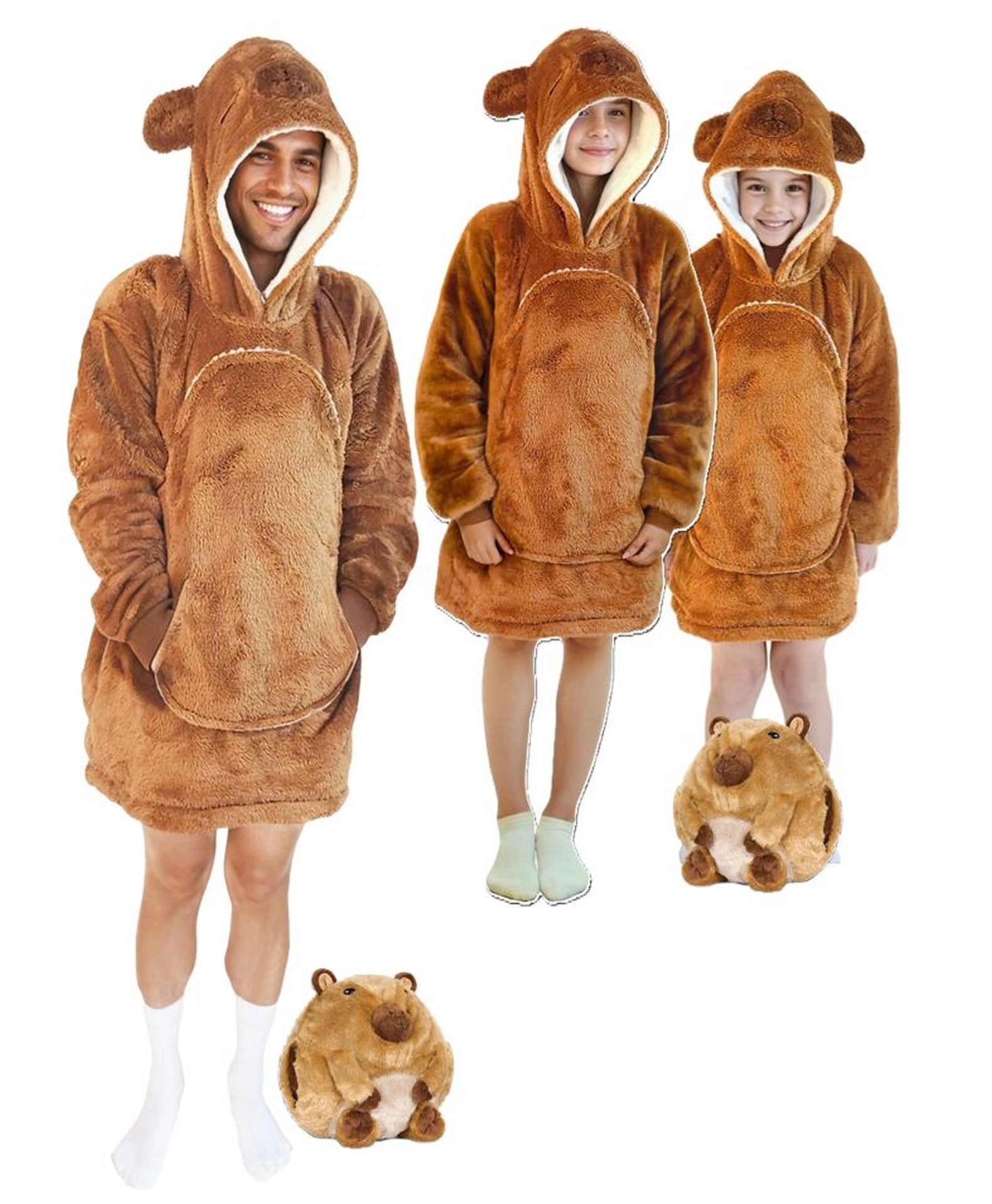 Den praktiske store hætte med dyreører og rumlige frontlomme varmer hænderne og gemmer småting. Takket være den oversize pasform sidder den behageligt og begrænser ikke bevægelsen – ideel til sofahygge, camping og kølige aftener på terrassen.