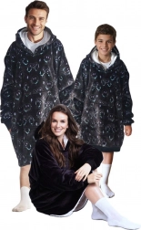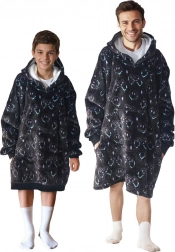 Praktiske detaljer som stor hætte og rummelig kængurulomme holder hoved og hænder varme. Tæppe-hoodien har en universel børnestørrelse med længde til knæene og passer til børn fra 7 til 12 år. Nem vedligeholdelse i vaskemaskine gør hverdagsbrug let.