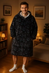 Svøb dig i maksimal komfort: denne oversized hættetrøje-plettetæppe fra COZY NOXXIEZ kombinerer tæppets blødhed med hættens praktikalitet. Den har en kæmpe hætte, en stor kængurulomme til hænder og småting samt superblød sherpa-fleece indvendigt for øjeblikkelig varme. Ideel til sofatid, PC‑gaming, afslapning og udendørs hygge i køligere vejr.