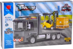 Opdag et sjovt byggesæt til små konstruktører: en detaljeret model af en trækker med platform-sættevogn og en gaffeltruck i skala 1:42. Sættet indeholder 404 dele, bevægelige dele og dekorative klistermærker for et realistisk udseende. Et godt valg til at udvikle finmotorik, tålmodighed og kreativitet.