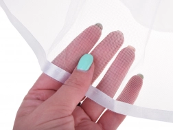 - Tyl/mesh, lette tekstiler, plast (stav), metaltråd (glorie)
