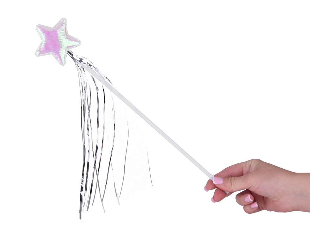 Den bløde, luftige glorie på hårbøjle fuldender det himmelske look. Tryllestaven med glitrende stjerne og sølvfarvede frynser sætter gang i fantasien under leg og optrædener.