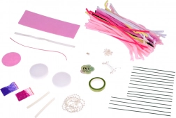 Hvad indeholder sættet: farvede kreative tråde, dekorative elementer (perler, bånd), farvet pulver, filt, svamp, tape, limstift (tilbehør – behøver ikke bruges) og billedvejledning.