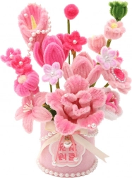 Oplev skaberglæden og sammensæt en iøjnefaldende blomsterkomposition i en elegant cylindrisk flowerbox dekoreret med bånd og perler. Takket være den enkle fremgangsmåde er sættet ideelt til begyndere og små skabere. Den færdige dekoration i romantisk stil passer perfekt til værelset, stuen og børnehjørnet.