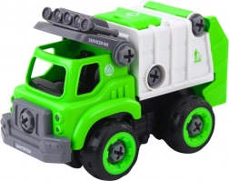 Dette interaktive sæt kombinerer konstruktionsleg og fjernbetjening. Børn samler selv en by-skraldebil med plastskruer og sætter den derefter i bevægelse – det er nok at indsætte motoren og skifte boremaskinen til RC-tilstand. Stærke, sikre plastdele og store hjul tåler daglig leg.