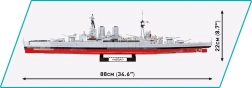Modellen af HMS HOOD er 88 cm lang og 22 cm høj, så den skiller sig ud på enhver hylde eller skrivebord. Trofaste proportioner i målestok 1:300 understreger dens samleværdi.