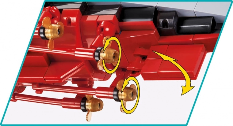 Drejelige artilleritårne, justerbare kanoner og et rigt udstyret dæk med både, master og kæder giver et realistisk udtryk og sjov håndtering efter færdigbygning.