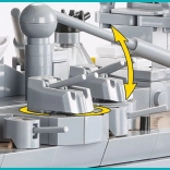 Skibet byder på mange funktionelle detaljer: drejelige kanontårne med elevation af løbene, bevægelige skibsskruer og ror, realistisk dæk og overbygninger. I pakken finder du også et elegant sort stativ og et hvidt navneskilt med skibets navn. En intuitiv manual med overskuelige ikoner gør byggeriet lettere, også for mindre erfarne byggere.