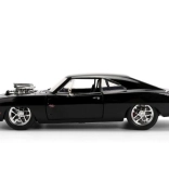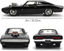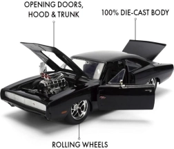 Ikonisk samlermodel af 1970 DODGE CHARGER fra filmen Fast & Furious i skala 1:24, der begejstrer både muscle car-fans og filmelskere. Modellen har metal-konstruktion, åbningsbare døre, motorhjelm og bagagerum samt realistiske detaljer, inklusive en markant kompressor på motorhjelmen. Modellens længde er cirka 21 cm.