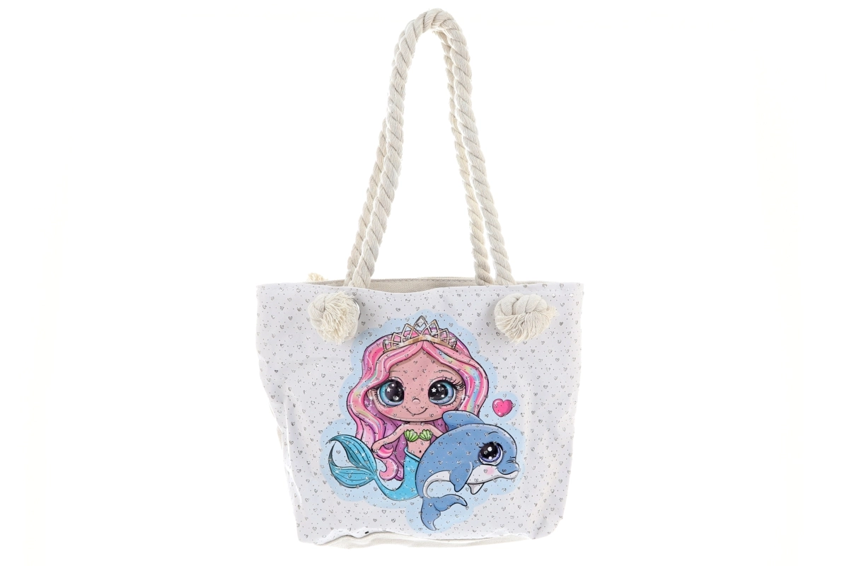 Denne praktiske skuldertaske med havfruemotiv kombinerer sødt design og funktionalitet til daglige ærinder, fritid og let hverdagsbrug. Den gummierede forside er aftørbar og derfor nem at holde ren, og den sikre lynlåslukning beskytter dine småting.