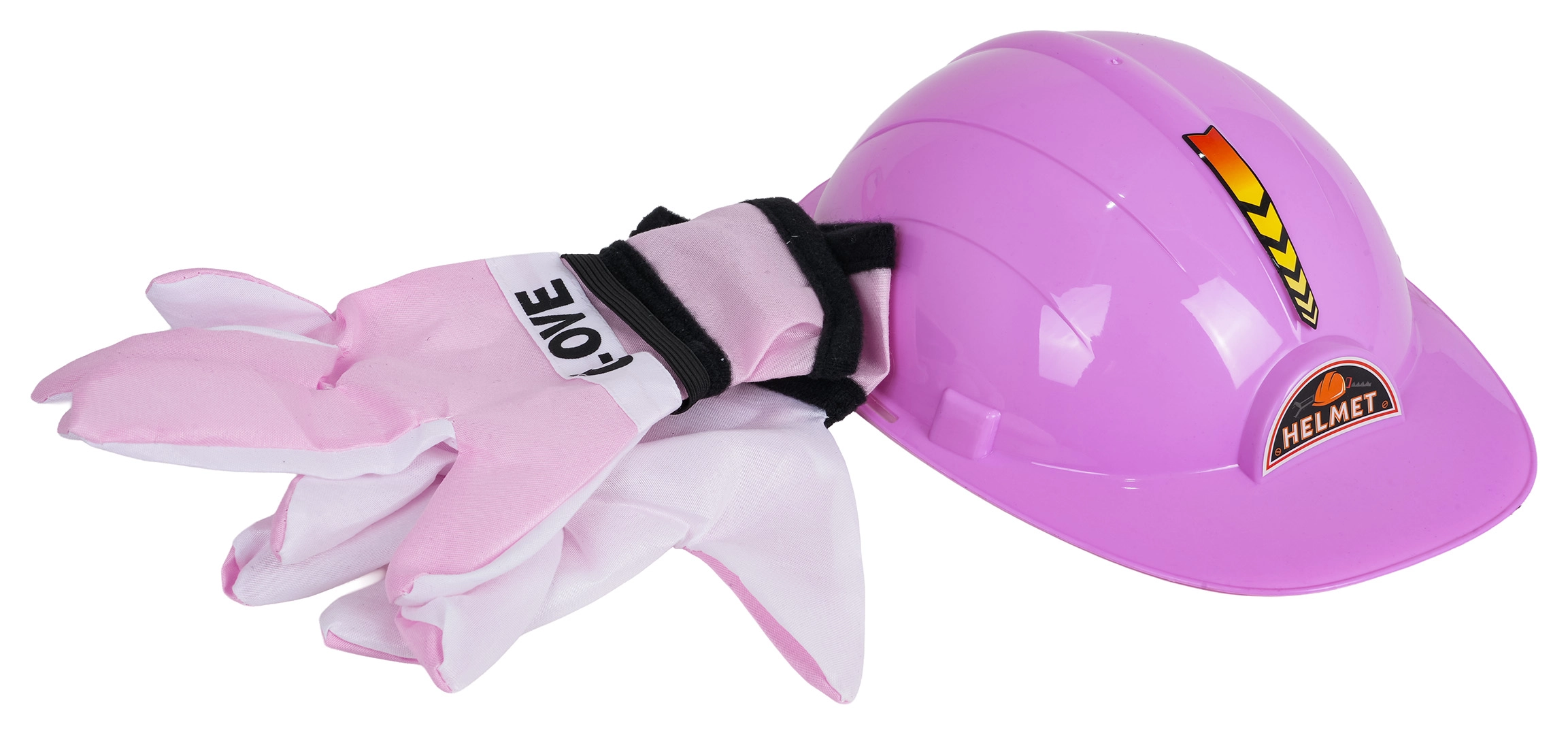 Sættet indeholder en rosa hjelm og bløde handsker for mere sikker og realistisk leg for små reparatører.
