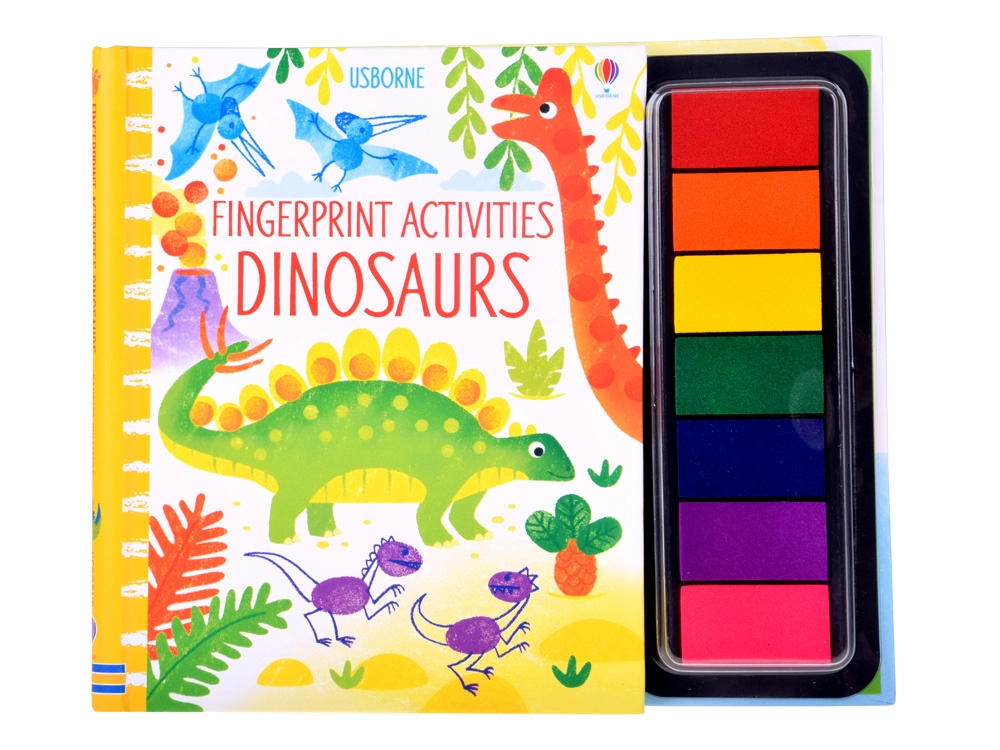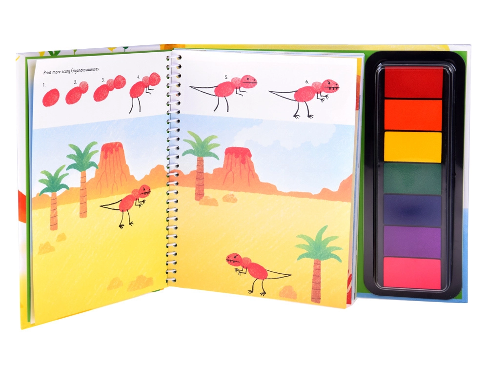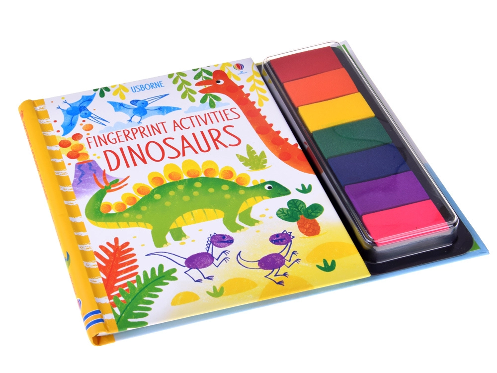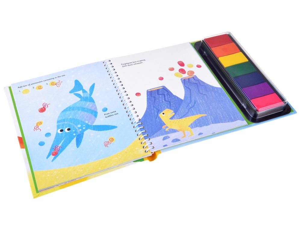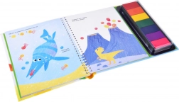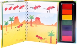 Fingeraftryksmalebogen med dinosaurer er et ideelt valg til børn fra 3 år. På hver side venter en ny forhistorisk figur og en enkel opgave, som barnet løser med fingeraftryk. Den integrerede palette med 7 farver gør det muligt at skabe uden ekstra redskaber – bare åbn og gå i gang.