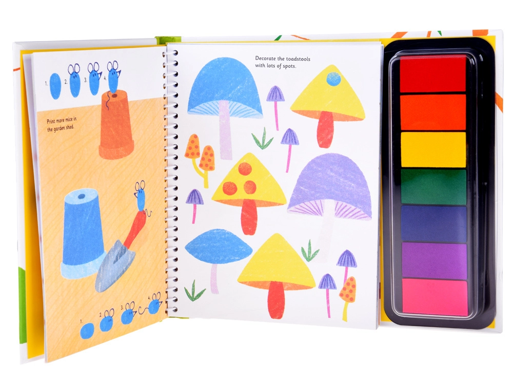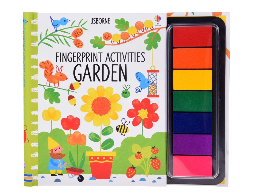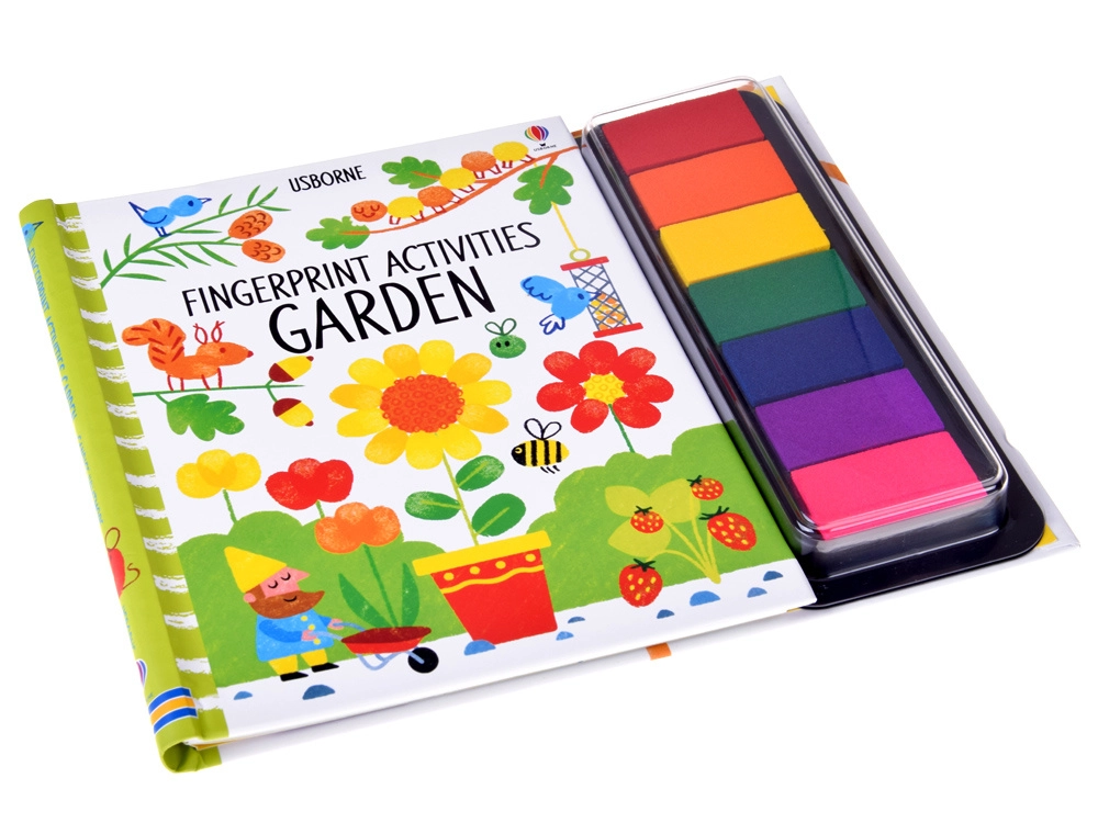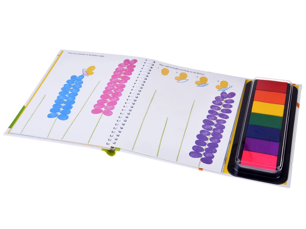 Denne farverige finger-malebog giver børn en enkel og intuitiv måde at skabe på. Tryk bare fingeren på den flerfarvede stempelpude og fuldend scener fyldt med blomster, sommerfugle og havedetaljer. Illustrerede instruktioner er lette at forstå selv for de mindste.