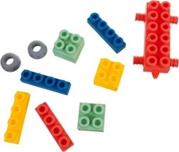 De farverige dele med markante knopper er lette at holde og sætte sammen. Børnene træner finmotorik, hånd–øje-koordination og udvikler fantasien.