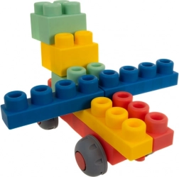 Byggesættet er perfekt til både individuel og fælles leg. Det hjælper med at udvikle kreativitet, logisk tænkning og finmotorik. Det praktiske gennemsigtige etui med hank gør det let at bære og opbevare, og klodserne kan nemt skylles i varmt vand.
