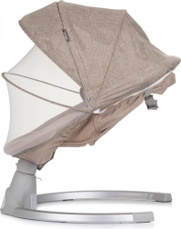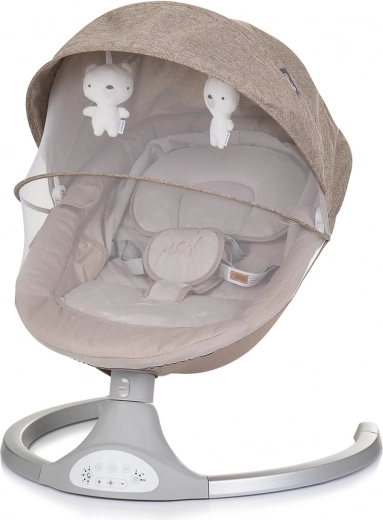Den elektriske vugge Nest Macadamia er designet til nyfødte op til 6 måneder (maks. 9 kg) og giver en rolig og naturlig gyngebevægelse. Den stabile metalramme sikrer tryghed, mens blød polstring og en støttepude sørger for komfort og korrekt støtte til hovedet. Kalechen med plysdyr understøtter sanseudvikling, og myggenettet beskytter mod insekter både hjemme og på terrassen.