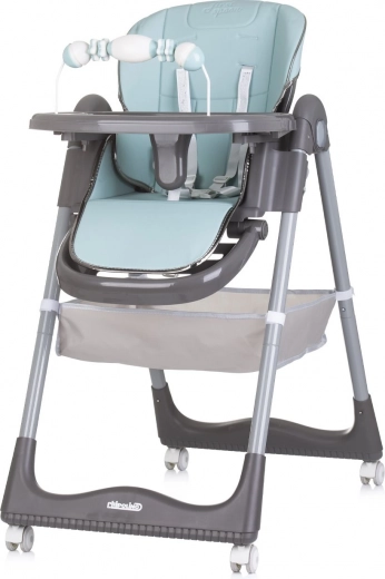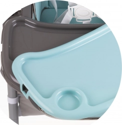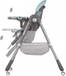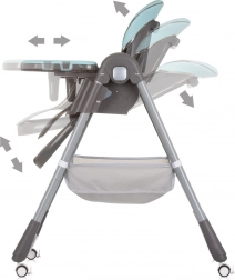 Den dobbelte bakke med aftagelig topdel gør vedligeholdelse let, og glid i 4 positioner tilpasser sig enhver situation. En legebøjle med legetøj underholder den lille, mens du roligt kan dække bord. Fire hjul gør det let at flytte rundt i hjemmet, og en opbevaringskurv holder alle småting lige ved hånden. Efter måltidet kan du hurtigt og kompakt folde stolen for at spare plads.