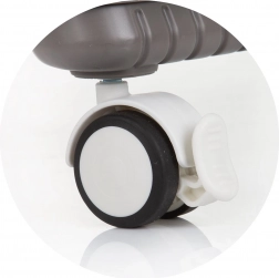 Fire hjul for smidig bevægelse rundt i hjemmet og en foldbar konstruktion, der sparer plads ved opbevaring.