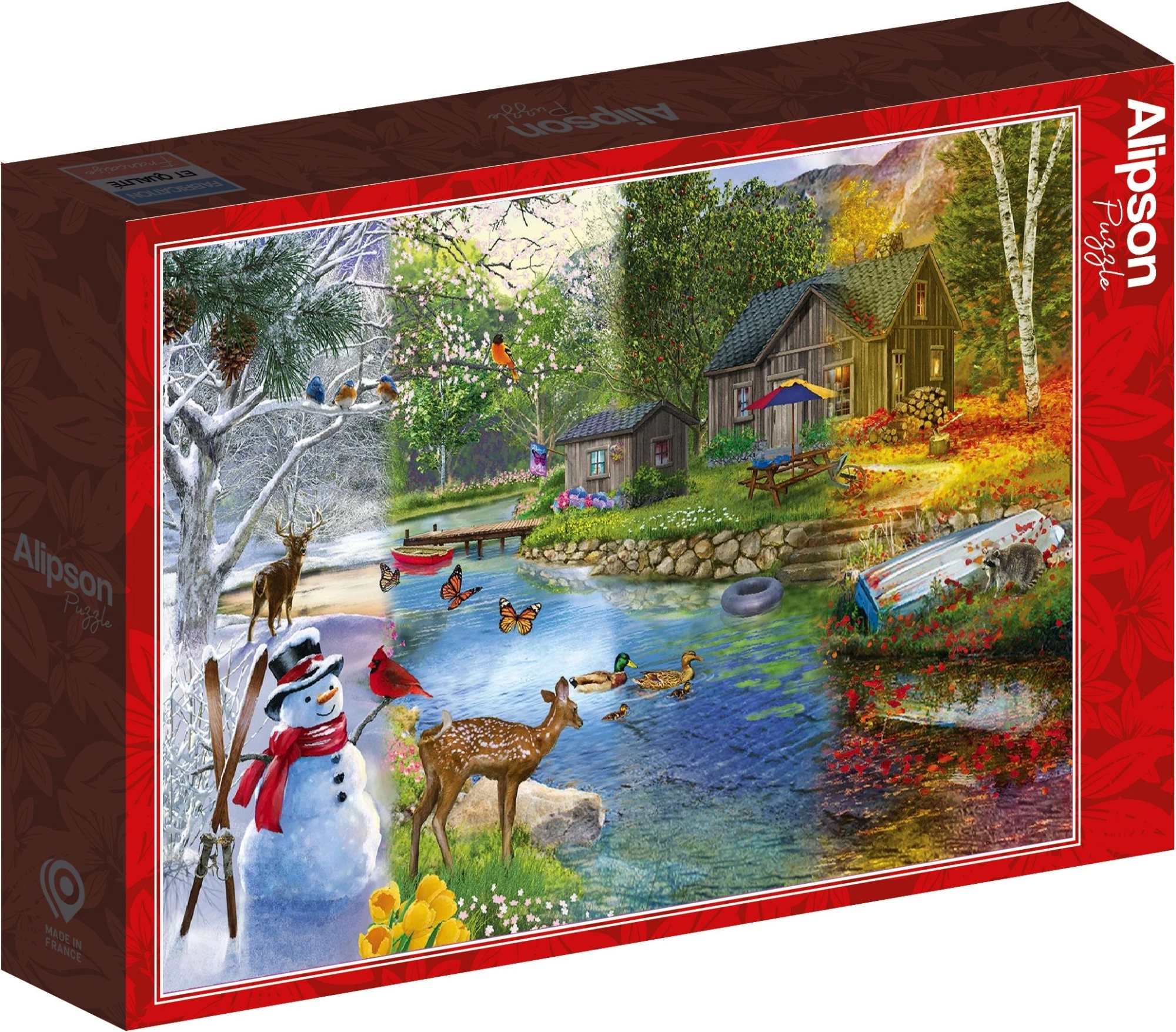 Oplev skønheden i de fire årstider i ét billede. Dette puslespil byder på præcist udskårne brikker, en behagelig overflade og et motiv, der underholder fra første til sidste del. Takket være en afbalanceret sværhedsgrad er det velegnet til voksne og øvede teenagere.