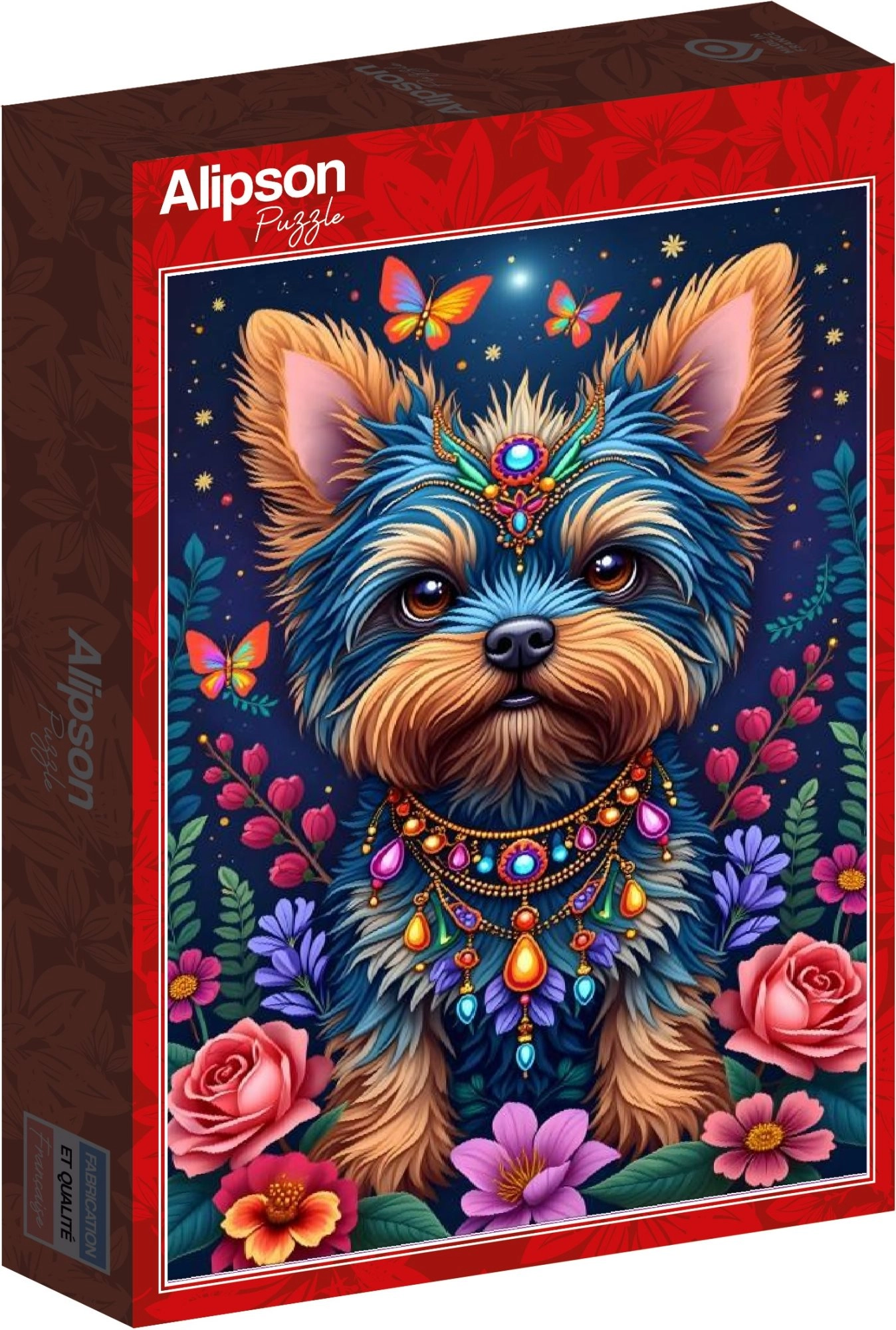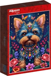 Nyd afslapning, mens du lægger det smukke motiv af en sød hund omgivet af blomster. Dette kvalitetspuslespil med 1000 brikker har en færdig størrelse på 47,8 × 68 cm og er ideelt for både dem, der elsker udfordringer, og dem, der vil have et dekorativt resultat.