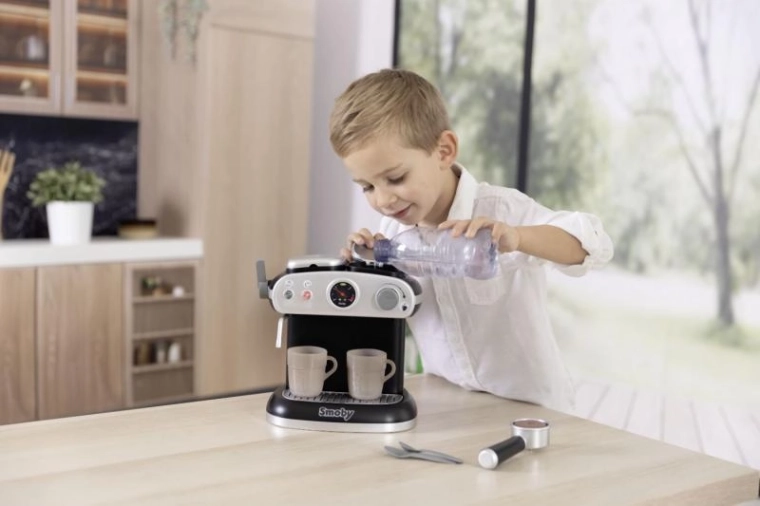 - Realistisk leg – knapper, håndtag og drypbakke som på en rigtig maskine.