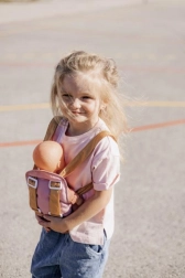 Bæreselen tilbyder 2 bærestillinger – vendt mod barnet for ro og nærhed, eller vendt udad til nysgerrige gåture. Den praktiske sidelukning gør håndteringen nem og sikrer en sikker fastgørelse af dukken. Velegnet til dukker op til 42 cm (dukke medfølger ikke).