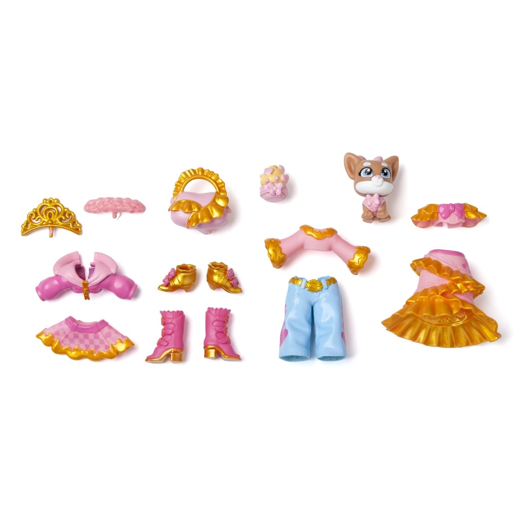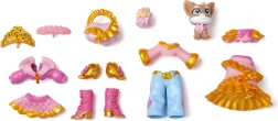 Opdag modeverdenen med KookyLoos Taylor i det deluxe Golden Gala-sæt! I pakken finder du 3 forskellige outfits, skiftende ansigtsudtryk med ét klik og en stilfuld hjerteformet taske til nem transport. Kombinér sko, kjoler, accessories og match looket med makeup – der medfølger også en sød kæledyrsfigur for endnu mere sjov.