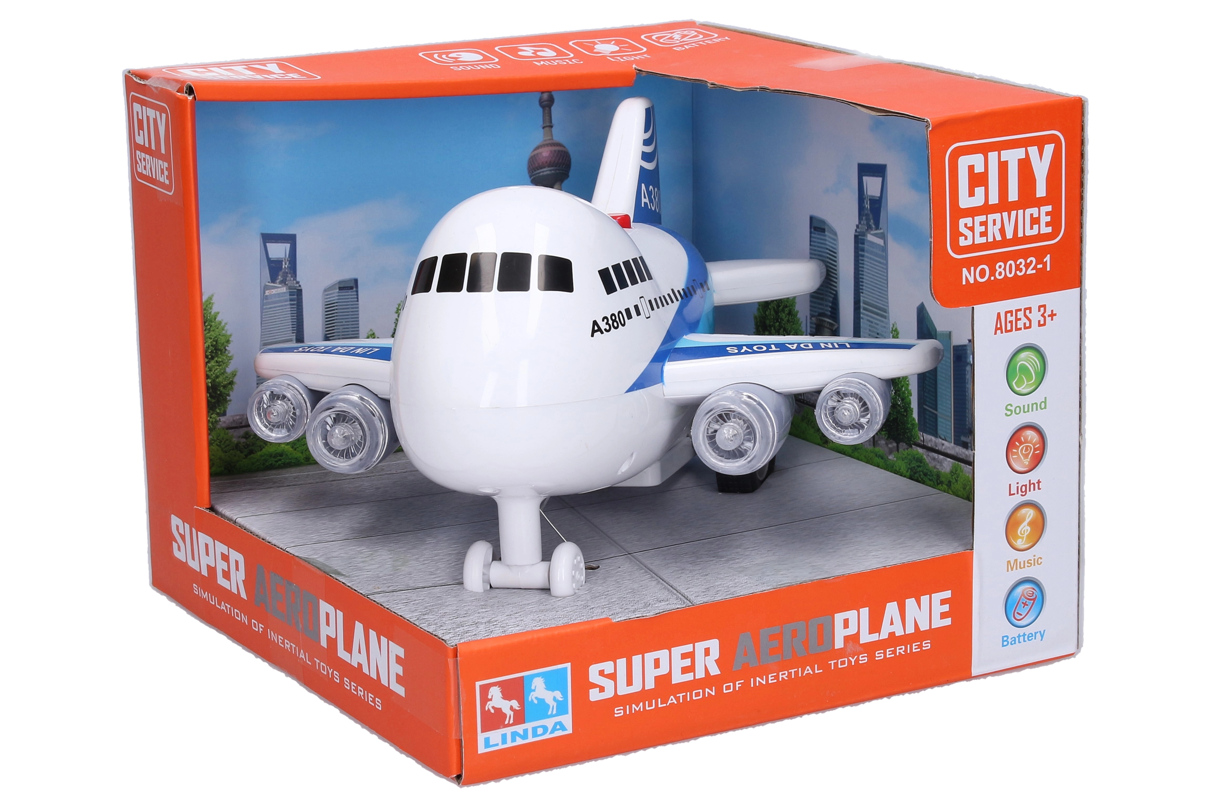 Oplev sjov med et realistisk trækfly, som kører jævnt fremad efter et let skub. Integrerede lys- og lydeffekter giver legen autenticitet, og børn kan nemt aktivere funktionerne via knapperne placeret på flyets tag.