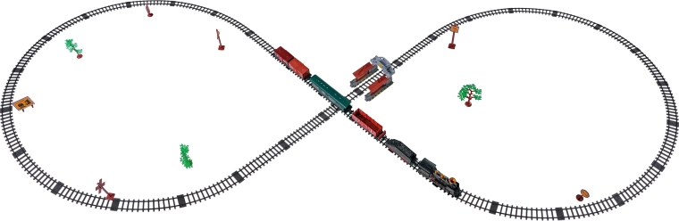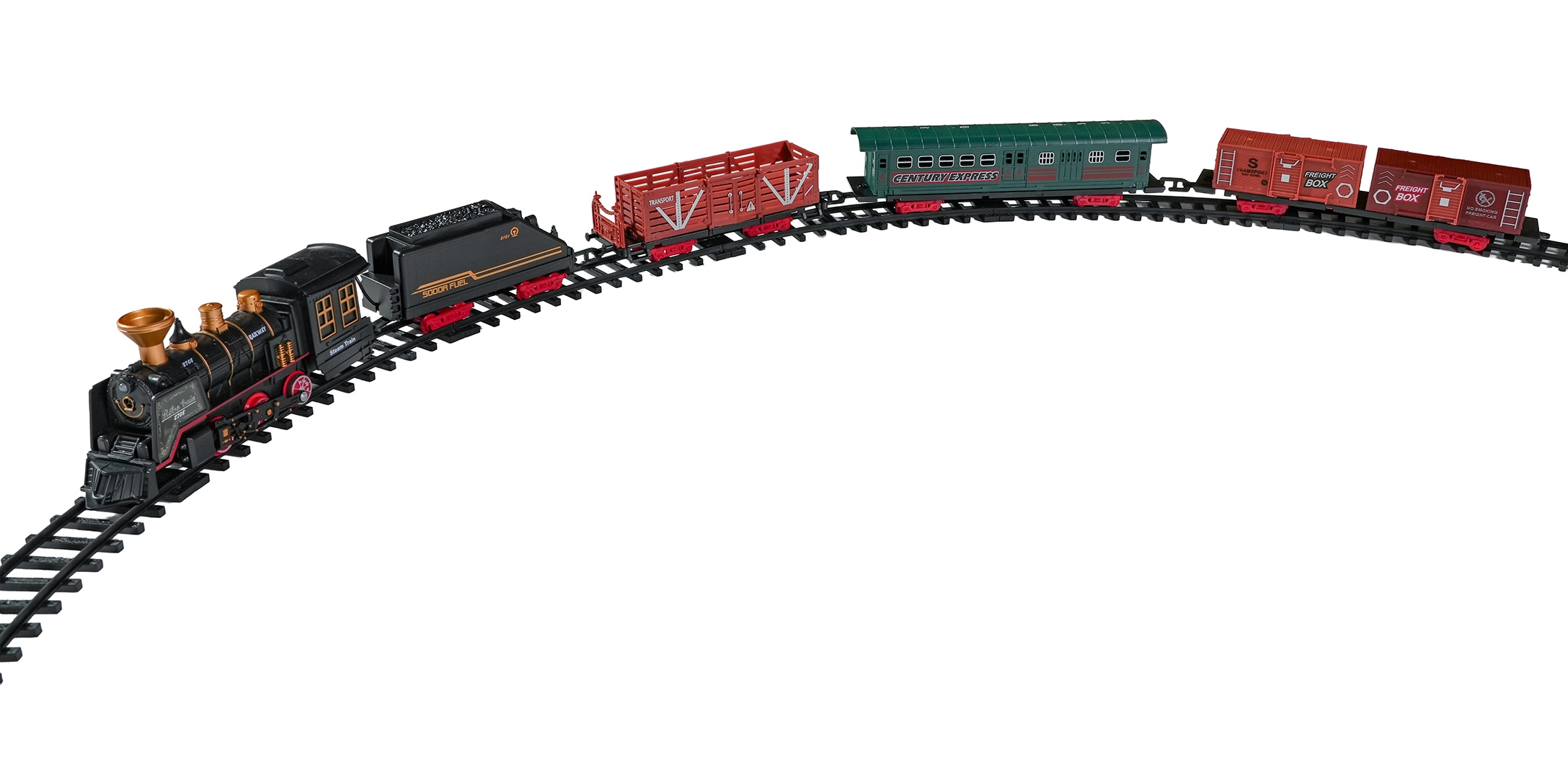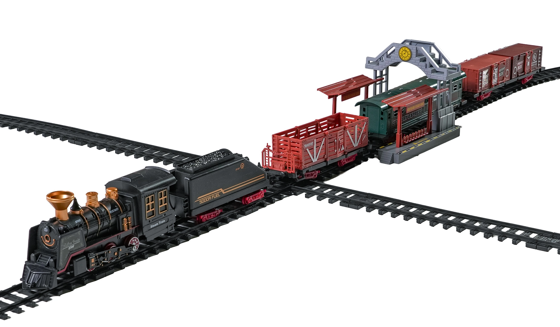 Pakken indeholder et komplet togsæt med lokomotiv, tender, person- og godsvogne, et sæt skinner samt tematisk tilbehør som træer og skilte. Sættet understøtter fantasi, finmotorik og tålmodighed og er ideelt som gave til små jernbaneentusiaster.
