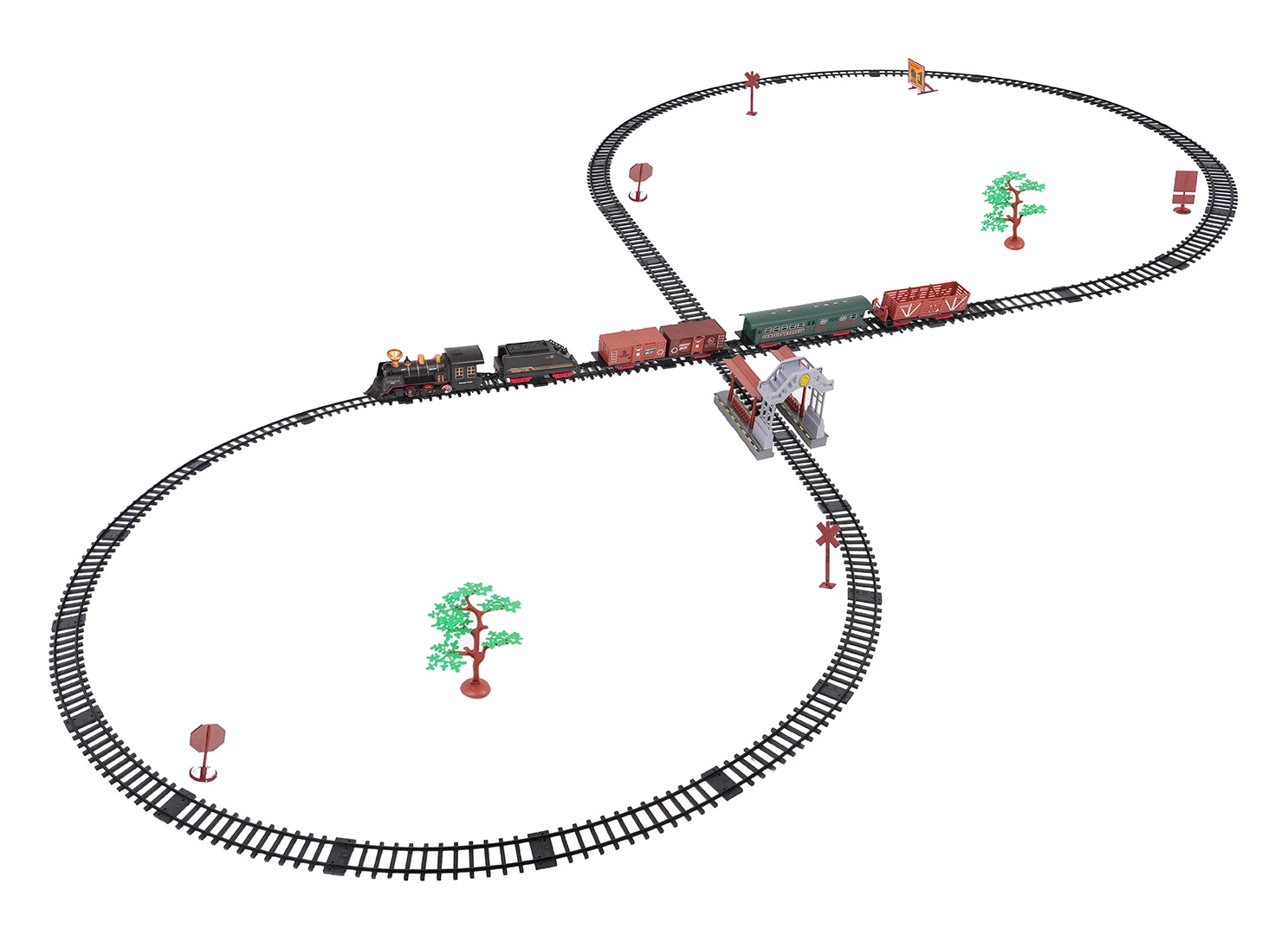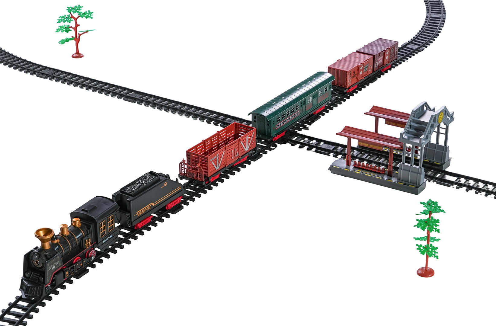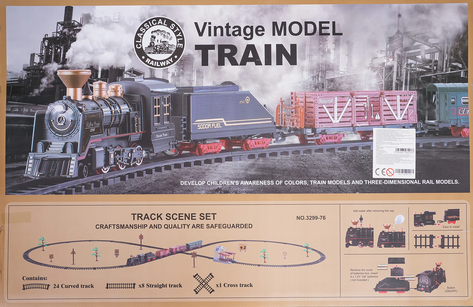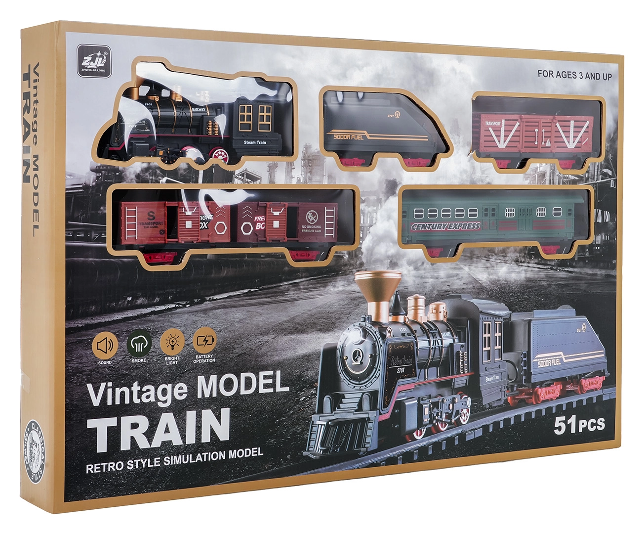 Dette detaljerede tog i vintagestil giver børn en autentisk køreoplevelse. Efter påfyldning af vand med den medfølgende pipette ryger lokomotivet let fra skorstenen under kørsel, forlygten lyser, og naturtro lydeffekter høres. Takket være robuste, sikre og modulære skinner kan børn nemt samle banen og sætte toget i gang.