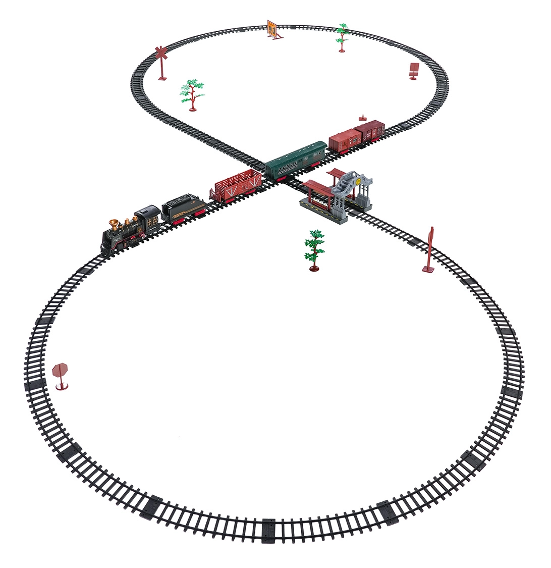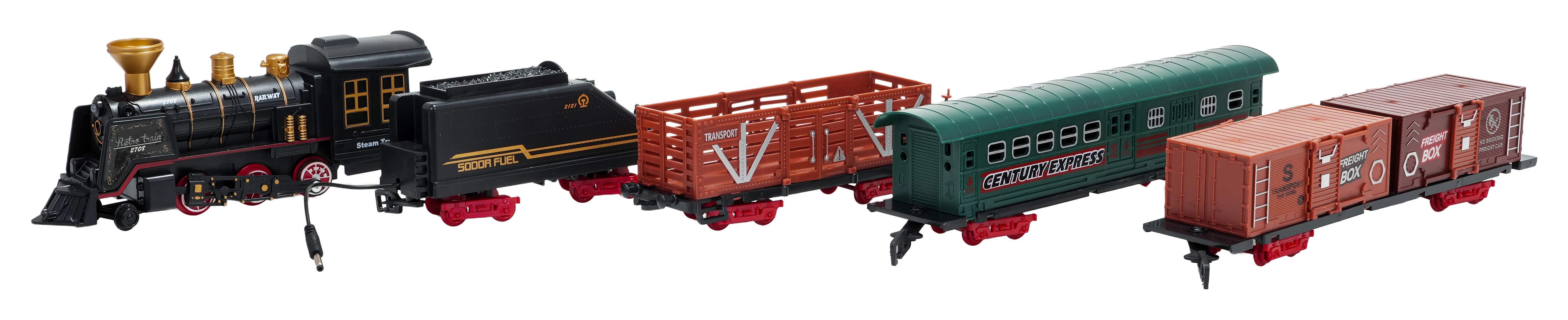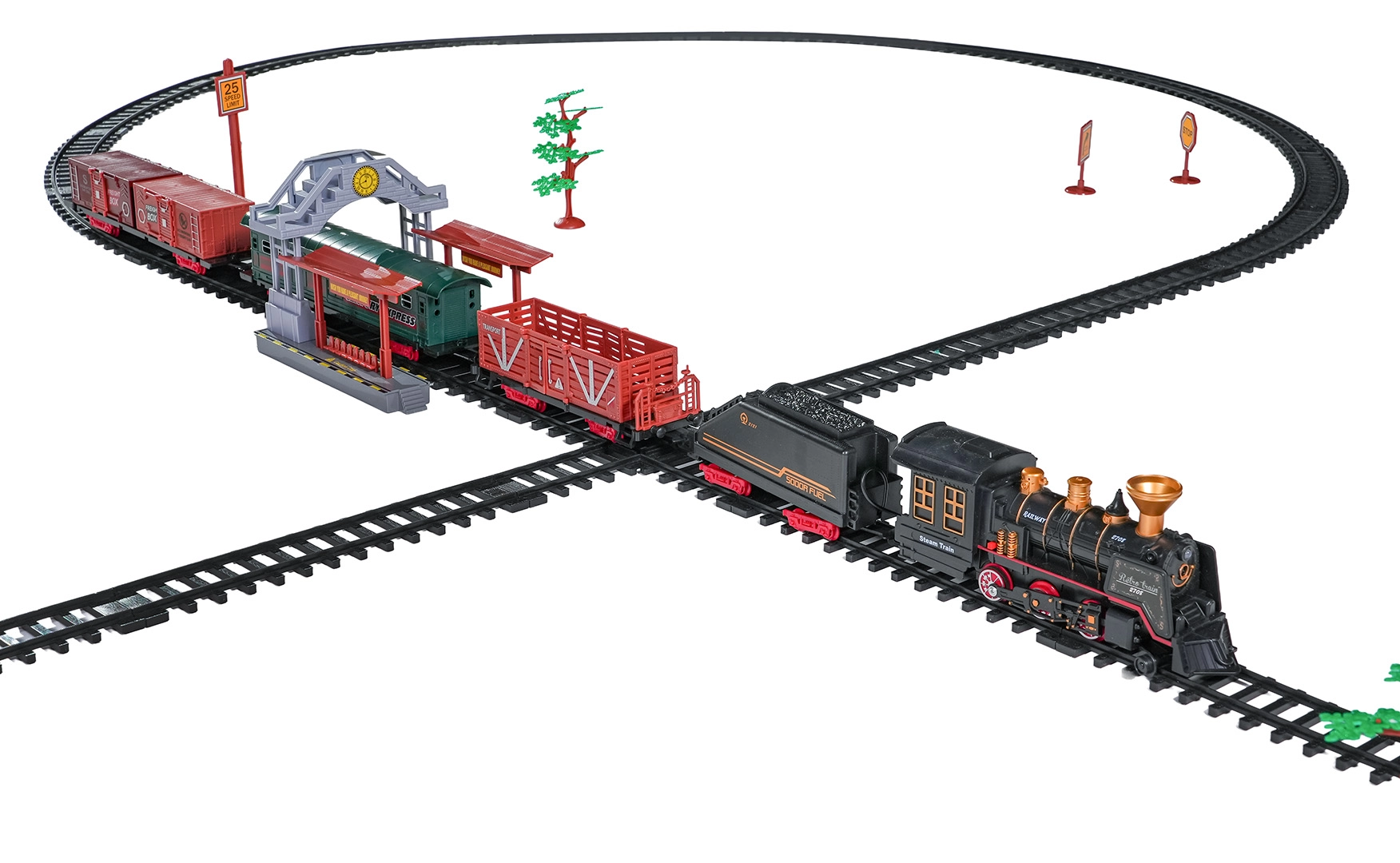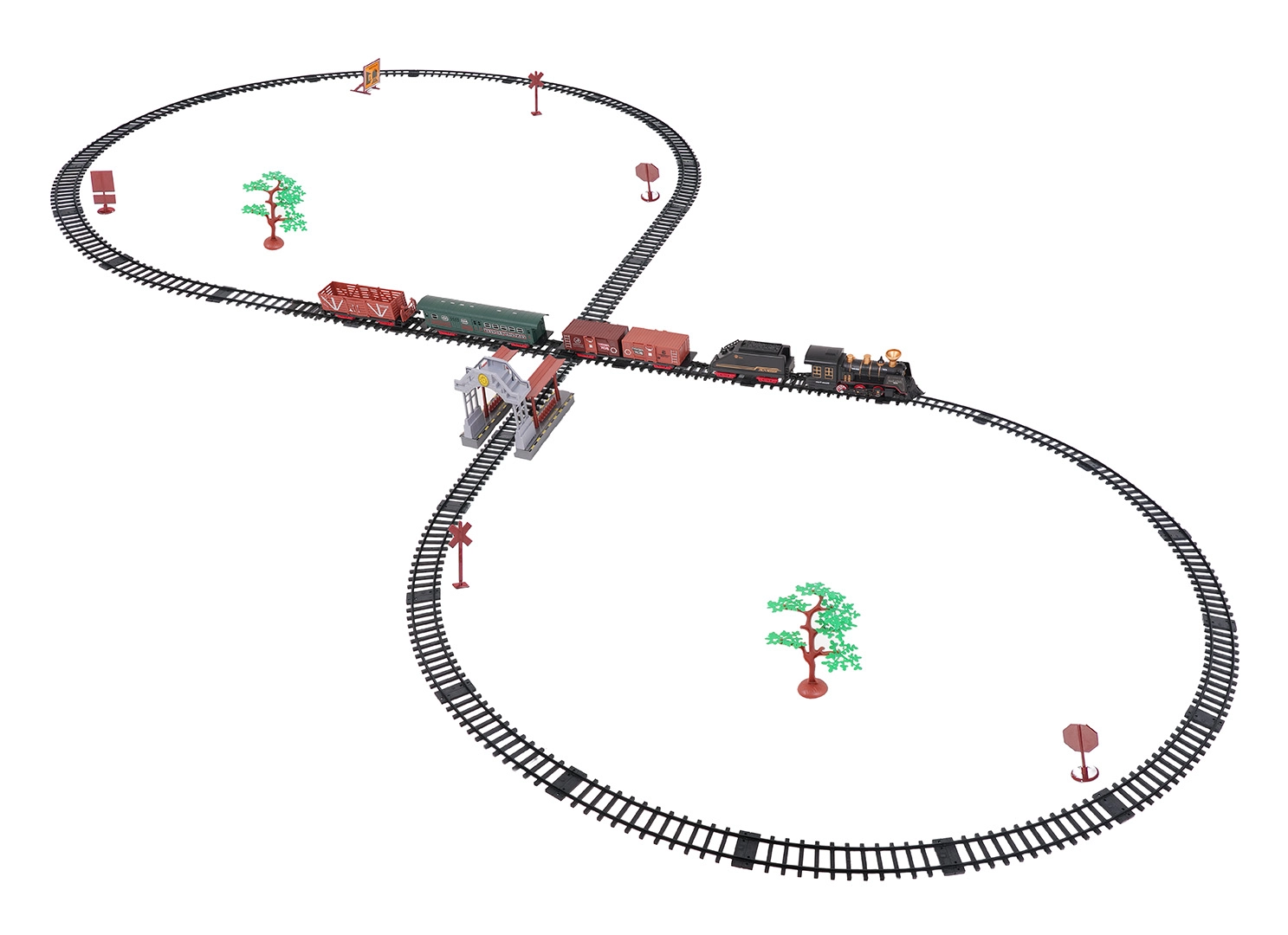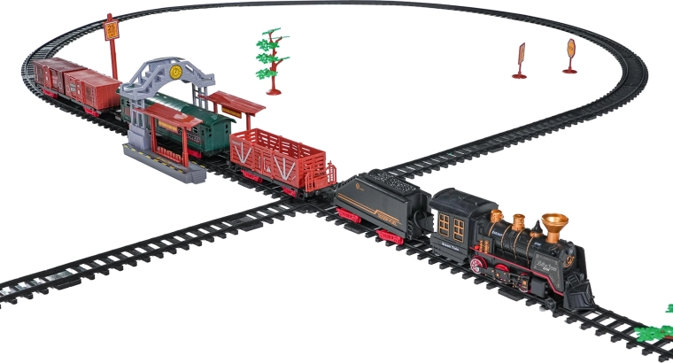 Dette detaljerede tog i vintagestil giver børn en autentisk køreoplevelse. Efter påfyldning af vand med den medfølgende pipette ryger lokomotivet let fra skorstenen under kørsel, forlygten lyser, og naturtro lydeffekter høres. Takket være robuste, sikre og modulære skinner kan børn nemt samle banen og sætte toget i gang.