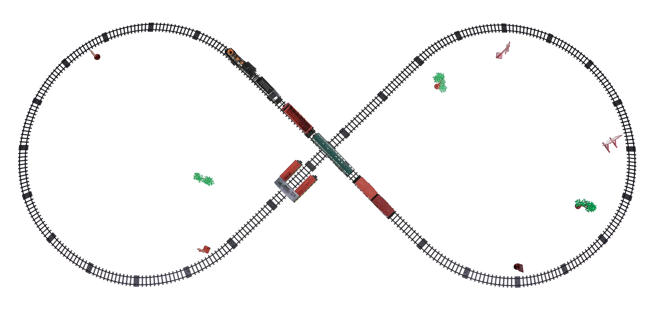Modulære skinner forbindes sikkert og hurtigt, så børn nemt kan bygge en stor bane og straks køre afsted.