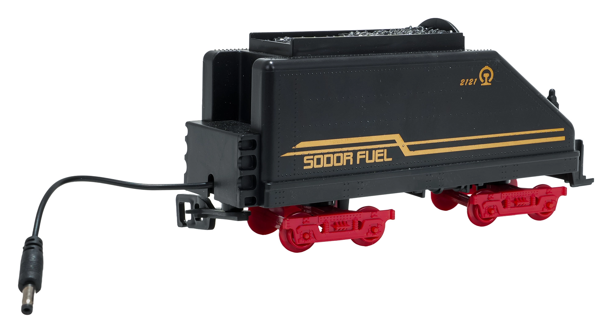 Når du tilsætter vand med den medfølgende pipette, udsender lokomotivet røg under kørsel, og forlygten lyser for en endnu mere autentisk oplevelse.