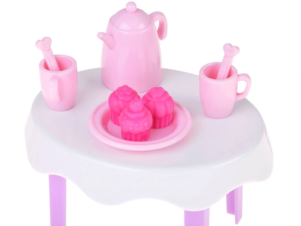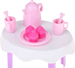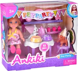 Ankiki Pet Party-sættet forvandler hver dag til en glad fødselsdagsfest. Børn kan sætte dukken ved bordet, servere te fra det lyserøde tesæt, dele lækkerier og cupcakes og tage sig af de to søde kæledyr – den hvide kat og den brune hund. Pastelfarverne og det venlige design stimulerer fantasien og skaber en blid legeatmosfære.