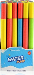 Denne vandpumpe er det perfekte valg til aktiv leg på varme dage. Dyp spidsen i vandet, træk stemplet tilbage, og du er klar til en forfriskende vandkamp. Takket være den lette konstruktion og de markante farver er pistolen ideel til haven, poolen, stranden og udflugter.