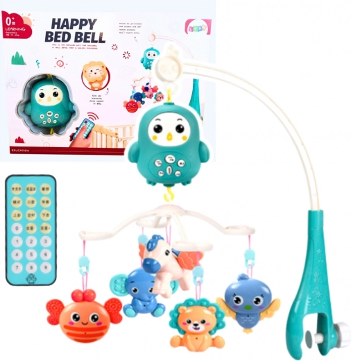 Berolig din baby og støt dens udvikling med denne blå karrusel til tremmesengen. Med fjernbetjening, vuggeviser og lyde, roterende rangler og automatisk slukning skaber den en behagelig atmosfære for rolig indslumring og stimulerer samtidig barnets sanser.