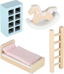 Glatte trækomponenter med blødere kanter, fine tekstiler og filtede accessories i pastelnuancer er behagelige at røre ved og ideelle til små hænder.