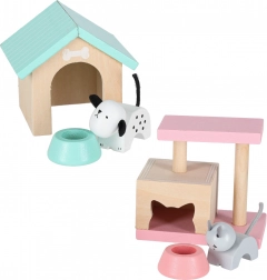 Inkluderer figurer af hund og kat, skåle, hundehus og kattekradsetræ – perfekt til pasning af kæledyr og rollelege.