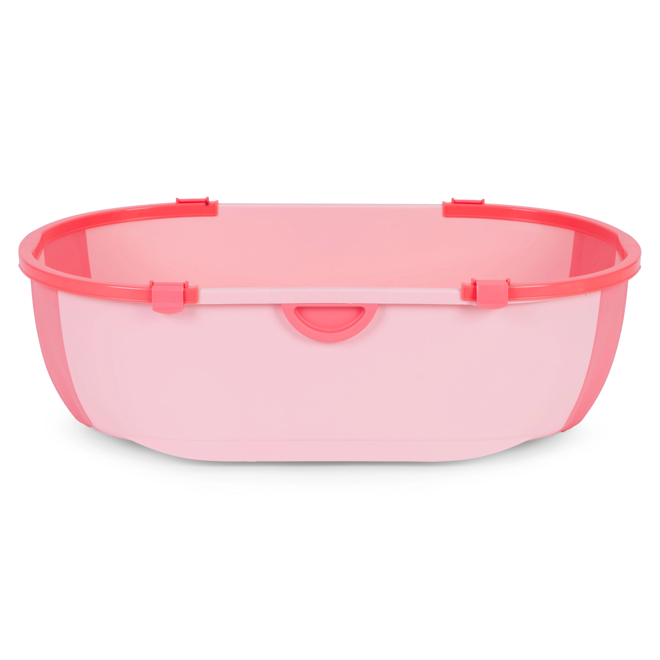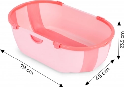 ECOTOYS badekarret sikrer komfort og sikkerhed ved det daglige bad både hjemme og på ferie. Takket være den sammenklappelige konstruktion kan det let opbevares selv på lille plads og hurtigt gøres klar til brug. Termoindikatoren i proppen skifter farve, hvis vandet er for varmt, så du har styr på temperaturen og beskytter den sarte babyhud.