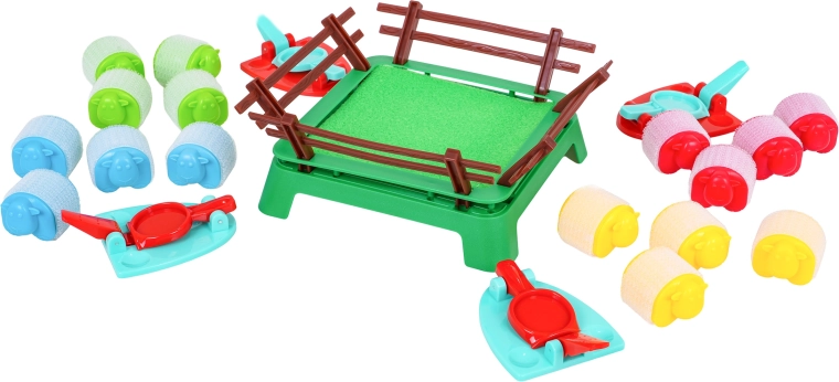 - 16 farvede får, 4 affyrere, indhegning, manual (EN)