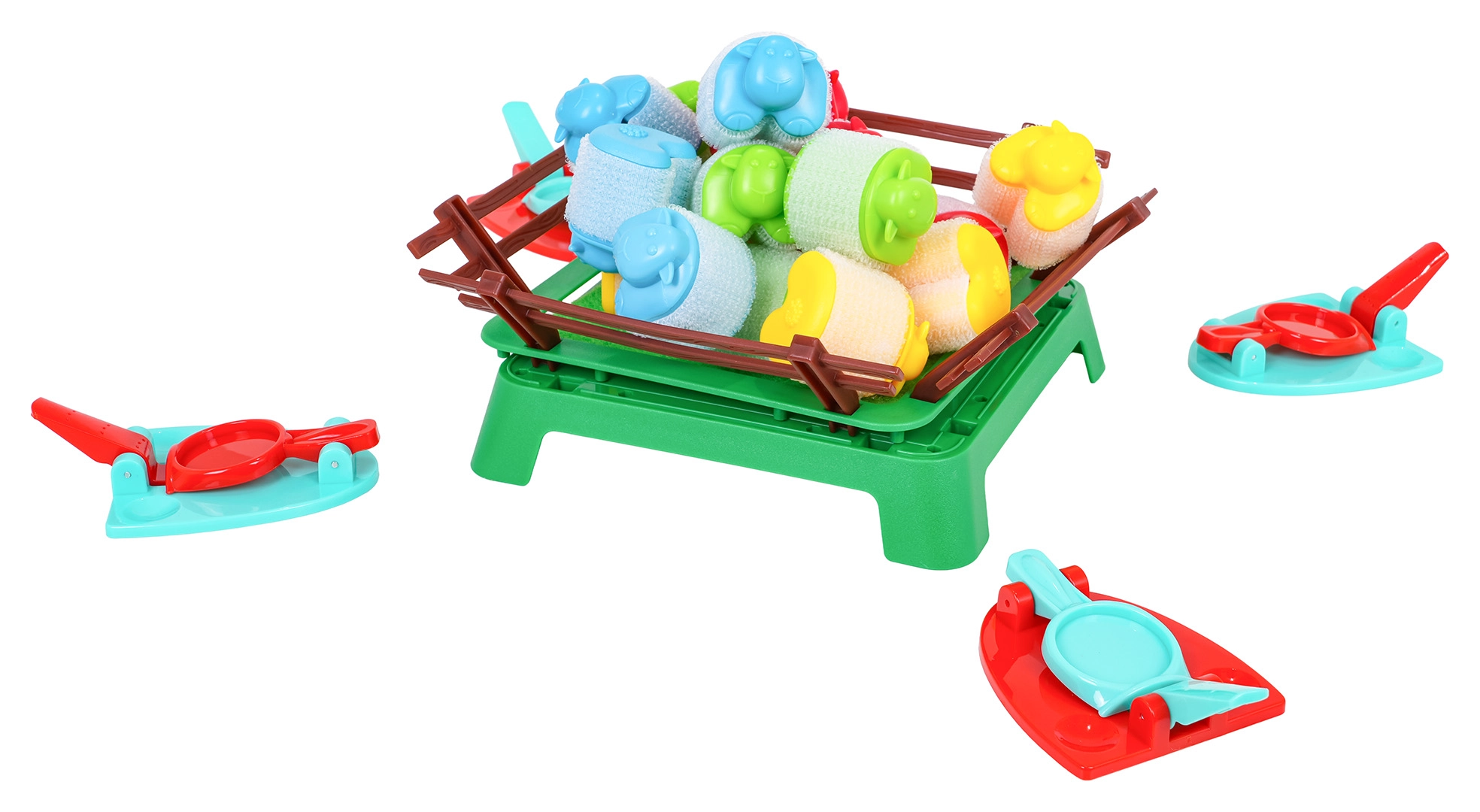 Underholdende familie-færdighedsspil for børn fra 4 år, hvor spillerne forsøger at få deres får ind i indhegningen ved hjælp af små affyrere. Spillet udvikler finmotorik, hånd-øje-koordination og hurtige reflekser. De farverige brikker med blød overflade er lavet af sikre materialer, og takket være velcro kan fårene stables til sjove små tårne.