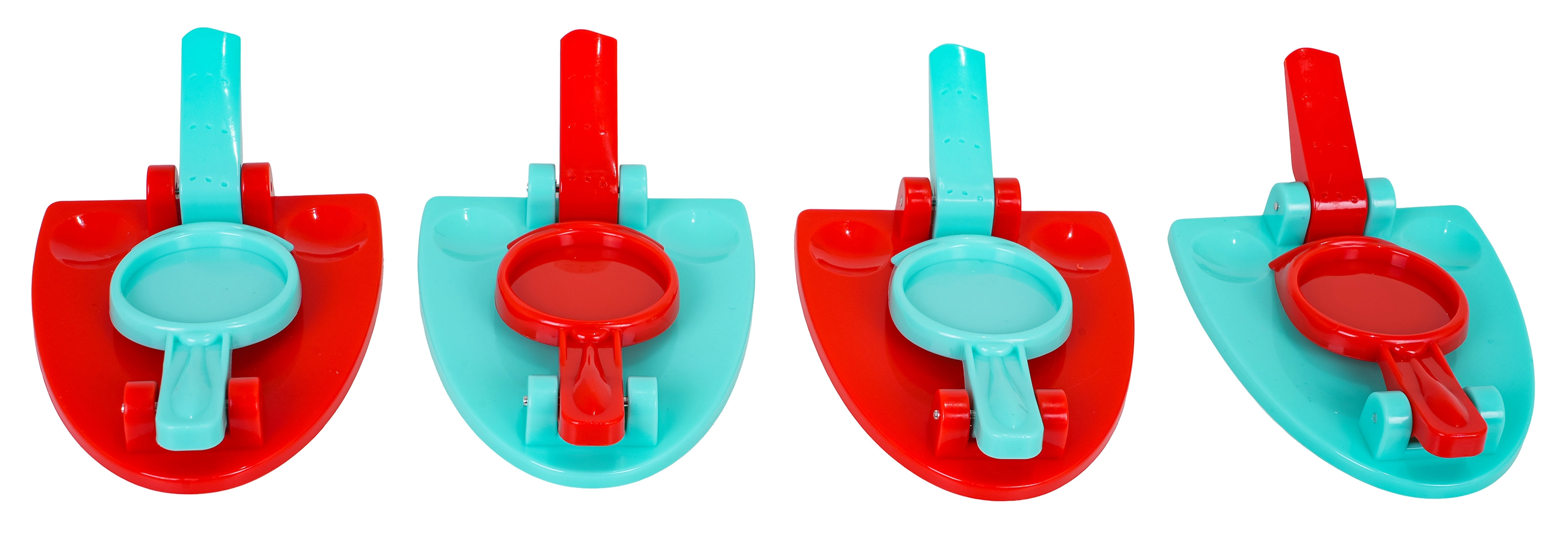 Robuste affyrere i plast med jævn gang gør det sikkert for børn at øve præcision og fornemmelse for kraft.
